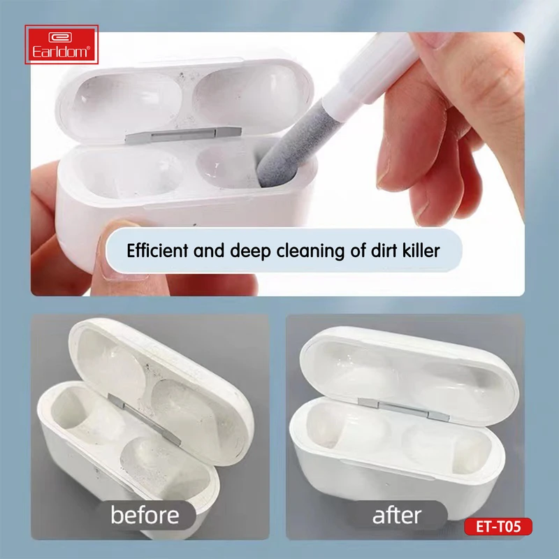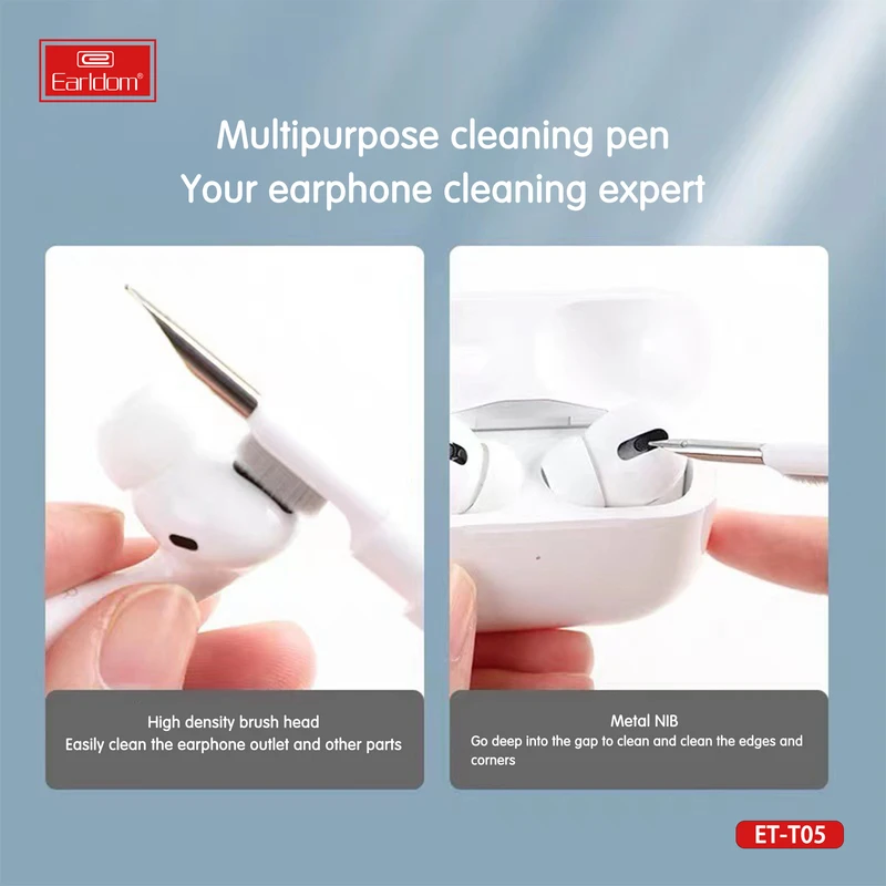 باکتری موجود روی گوشی و ایرپاد به دلیل استفاده روزمره و قرارگرفتن در مکان های متعدد از هر شیء دیگری بیشتر است. چون این وسیله با گوش انسان در ارتباط است مستقیما میتواند باعث ایجاد بیماری در بدن گردد . از طرفی پاک کردن هندزفری با مواد شوینده ی متفرقه ممکن است به آن آسیب برساند یا از کیفیت آن بکاهد. ابزار تمیز کننده ارلدام مدل T05 جهت پاک کردن ایرپاد و جعبه ایرپاد و همچنین نقاط مختلف گوشی موبایل که مستعد جذب و انباشتگی آلودگی مانند اسپیکر و بلندگو و دوربین و سوکت شاژ و …کاربرد دارد و شما را از آلودگی ها و حفظ سلامت شما در عین حفظ کیفیت ایرپاد و گوشی موبایل تولید شده است. با استفاده روزمره از ایرپادهای خود حتما شما هم با مشکل سیاه شدن درب ایرپاد و یا کثیف شدن محفظه ای که گوشی ها در آن قرار میگیرند مواجه شده اید این محصول تماما مشکل کثیفی ایرپاد و گوشی های موبایل و … را بر طرف می کند و با سری های مختلفی که در این مجموعه تنظیف وجود دارد به راحتی میتوان آنها را تمیز نمود.